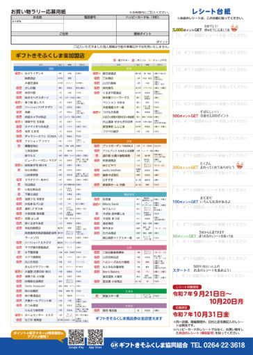 ギフト加盟店で500円(税込)以上お買い物したレシートを最大15店舗集めると