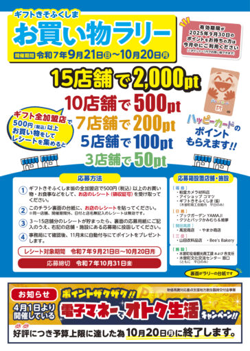 ※ 店舗数によりポイント数は変動します 詳しくはお買い物ラリー概要(下記事)を参照してください。