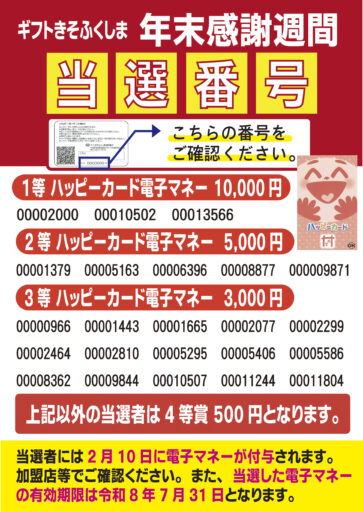 2025年末感謝週間 当選番号発表